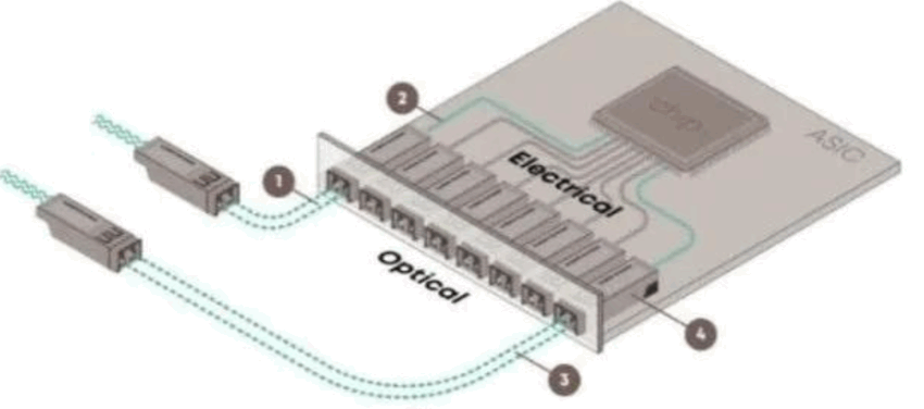 目前基于 AISC 交换芯片的交换机,可以定义为 Optical to electrical to optical (OEO)packet circuit switches,核心的报文交换转发功能由 AISC 芯片完成。OEO 交换机收发都需要光电转换来满足信号传输的要求。